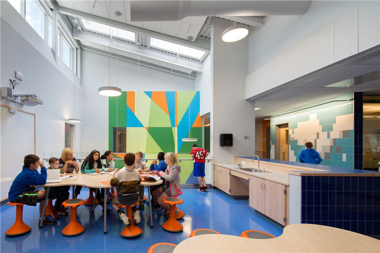 關(guān)于如何將一般課堂學(xué)習(xí)與多形式針對(duì)性教學(xué)有效結(jié)合,伍德蘭小學(xué)以標(biāo)準(zhǔn)教室與小型學(xué)習(xí)社區(qū)交互流動(dòng)的方式,做出了應(yīng)答。