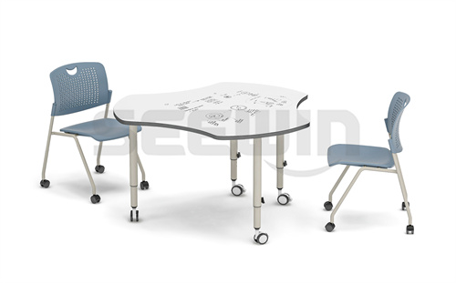 桌面采用 E0 級(jí) MDF 板,PU 封邊,穩(wěn)定耐用。桌面可書(shū)寫(xiě)材質(zhì),可供學(xué)生上課、討論書(shū)寫(xiě)涂改。適合創(chuàng)客教室、小組討論活動(dòng)等課程使用。