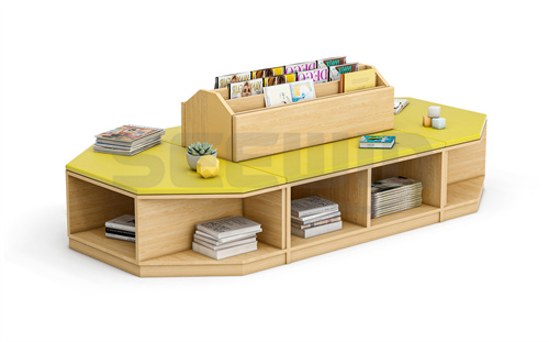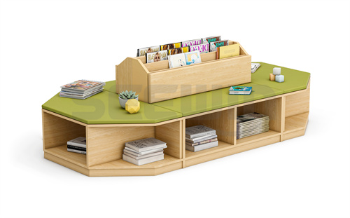 產(chǎn)品采用 E0 級(jí) MFC 板與軟包結(jié)合,綠色環(huán)保。整體多變形設(shè)計(jì),創(chuàng)意造型,加強(qiáng)學(xué)生閱讀興趣??勘耻洶问?,適合圖書館等區(qū)域使用。